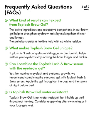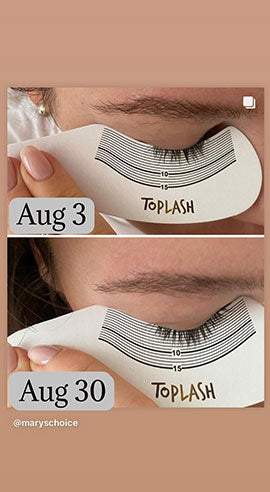After only three weeks of regularly using Toplash Eyelash Growth Serum you will have noticeable results. After two months of regular use, your eyelashes will have reached their maximum length and volume, plus your eyebrows will be noticeably thicker, darker, and more lustrous.