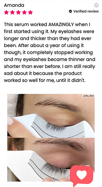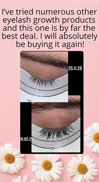 After 21 days of using the serum, you will notice that your eyelashes are longer and stronger. Ninety-eight percent of buyers report that the serum has been effective for them. After 90 days of regular use your lashes will have reached maximum length. With daily use of the serum, your lashes will increase in length by 52.5% and in volume by 31.9%. The serum will also protect against early hair loss.