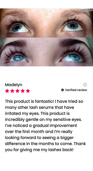 Our innovative serum stimulates hair follicles and natural processes to increase your eyelash and eyebrow growth cycle, resulting in longer, healthier, and thicker lashes.