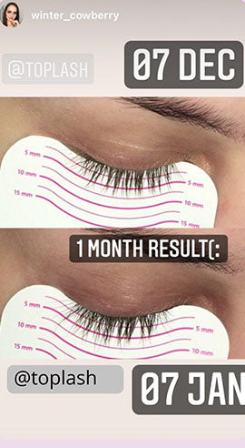 You will first notice results from Toplash after just 21 days of use. Within two months your eyelashes will reach maximum length and volume and your eyebrows will now be at maximum density and luster. The product is especially effective when used while recovering from extensions, various illnesses, or low-quality cosmetics. Toplash is also very effective in restoring lash and brow volume after childbirth when the body is suffering from a deficiency of nutrients.