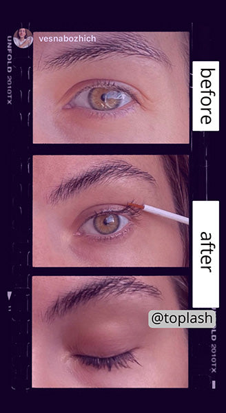 Do this every day before going to bed. The product is absorbed in a couple of seconds and while you are sleeping, it is actively working. At the same time, Toplash acts very gently and has a calming effect on the skin around the eyes."