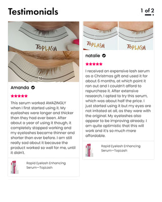 Regarding the price of the serum, in evaluating customer reviews it is apparent that for many, Toplash is the highest-quality and most effective eyelash serum in the marketplace for the price.
