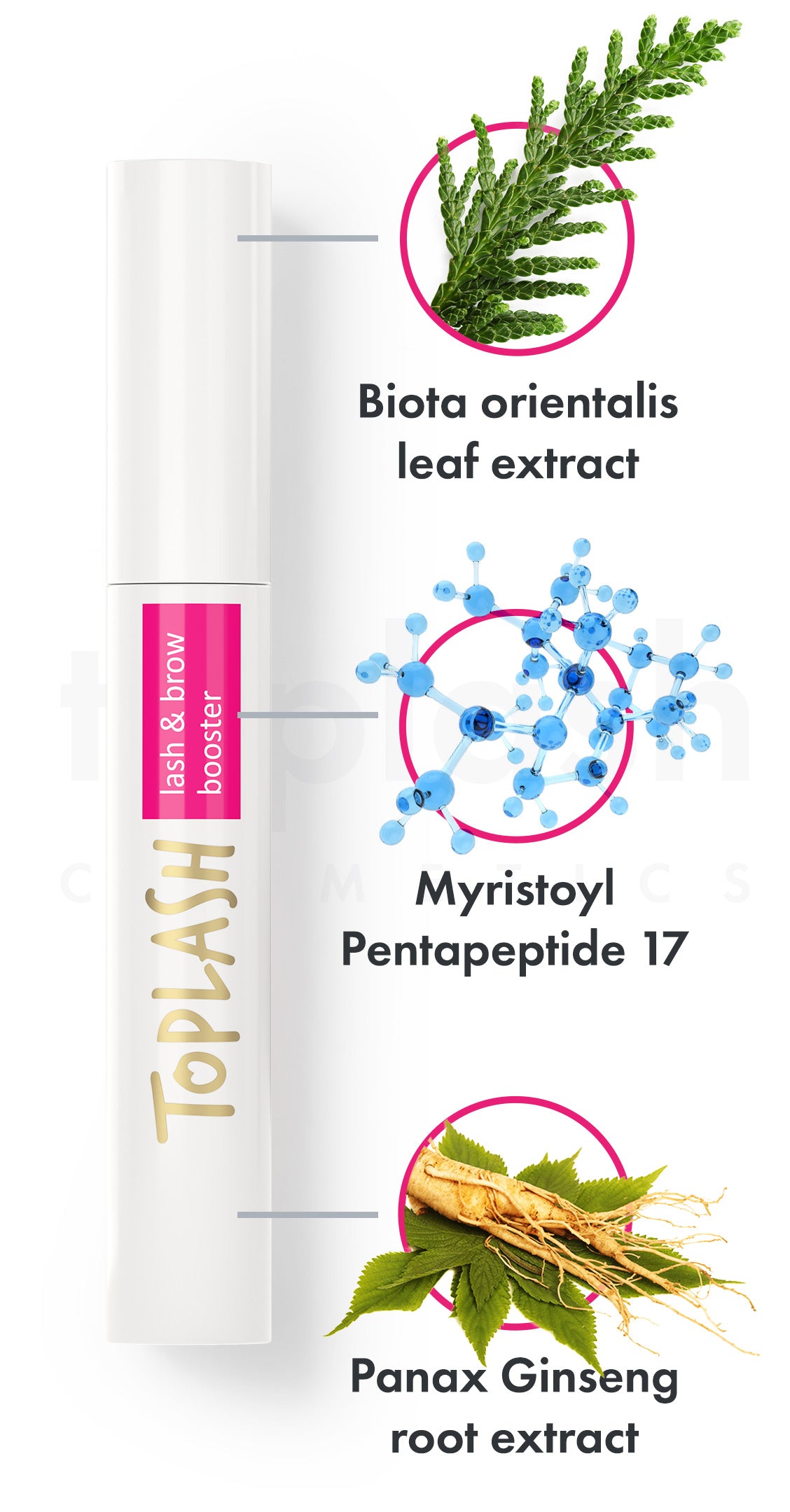 Toplash Eyelash serum (3 Month Supply) is a beauty product that is designed to promote the growth of longer, healthier, and more vibrant eyelashes and eyebrows. Its advanced formula stimulates hair follicles, enhances pigmentation, and strengthens lashes to achieve natural and long-lasting results.